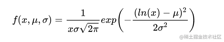 const y = (mu, sigma) => (x) => 1 / (x * sigma * Math.sqrt(2 * Math.PI)) * Math.exp(-Math.pow(Math.log(x) - mu, 2) / (2 * Math.pow(sigma, 2)))