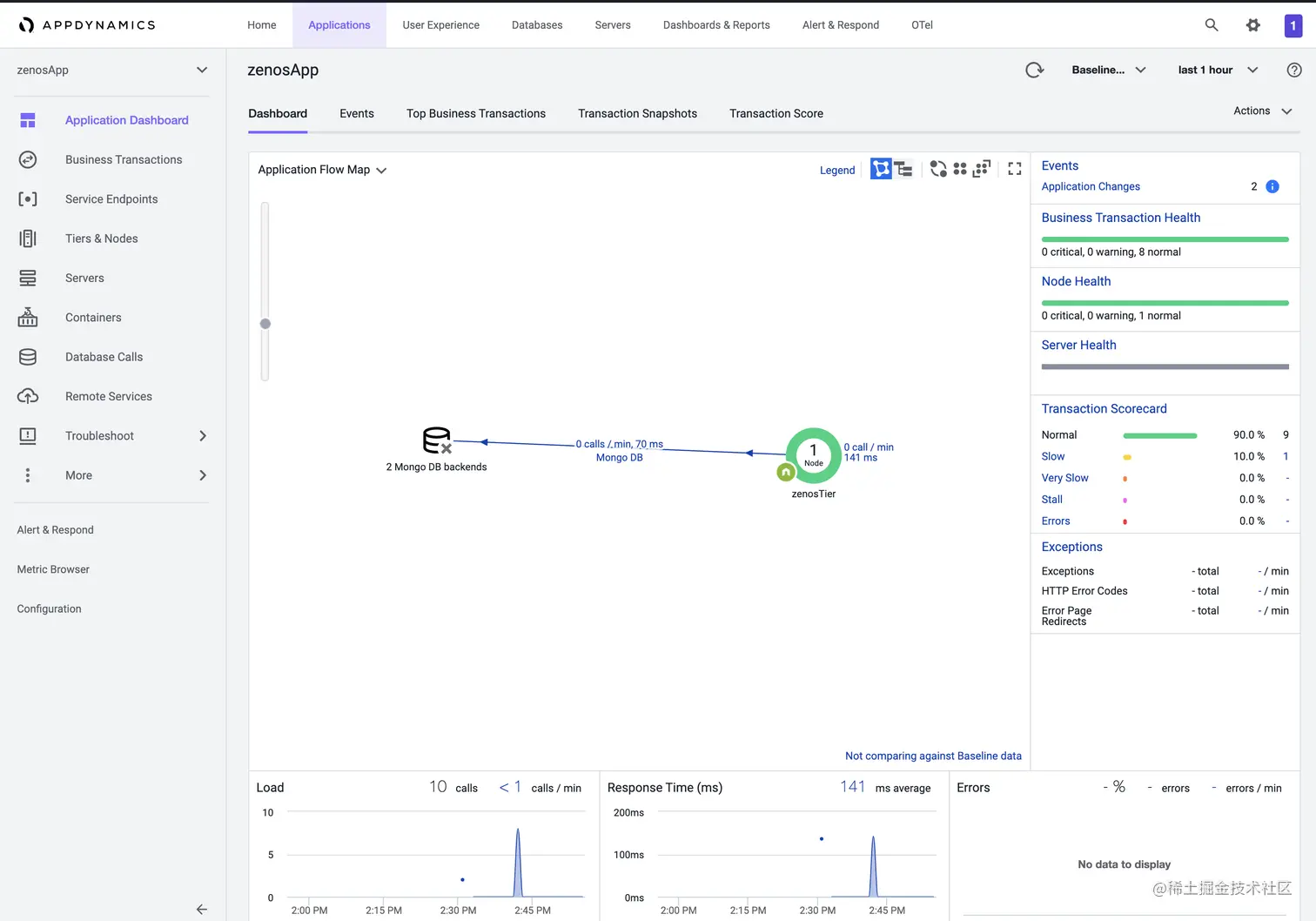 - 运行项目,就可在appdynamic的控制台看到项目的检测面板了