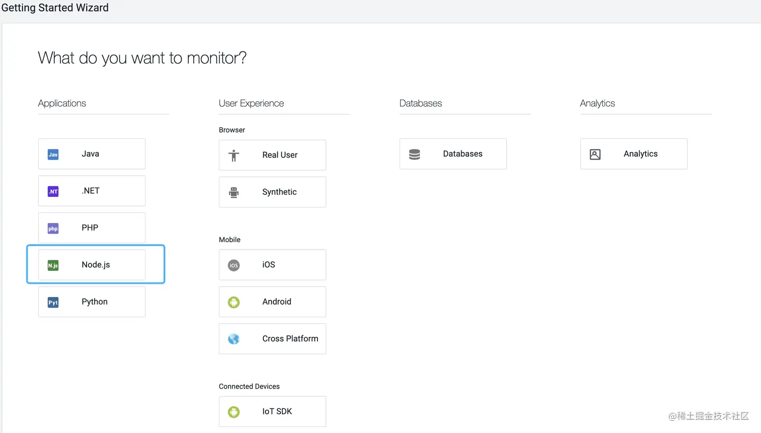 我们可以看到有各种可监测的APP,我们选择nodejs