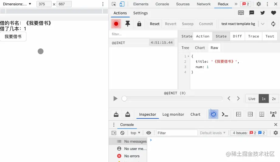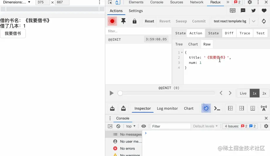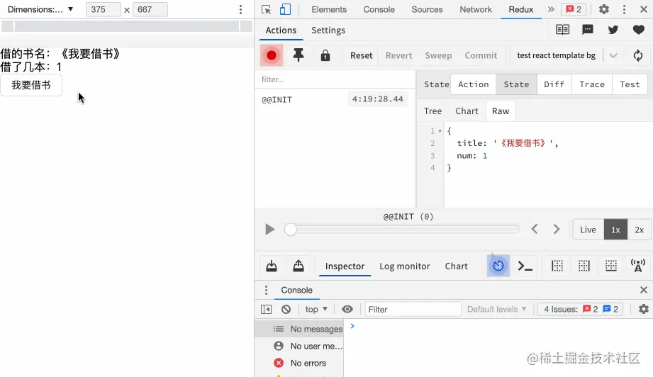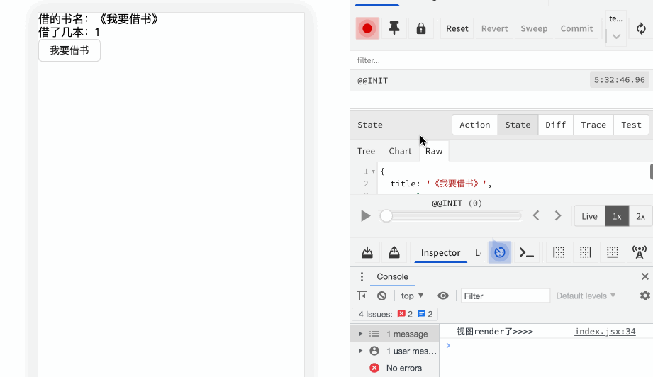 - 书店里能借出去的书少了一本 则表示reducer更新了当前的state数据。