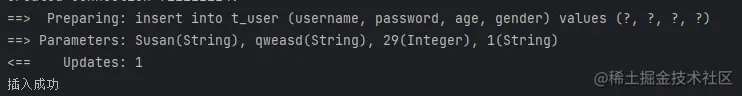 @Insert("insert into t_user (username, password, age, gender) values (#{username}, #{password}, #{age}, #{gender})")