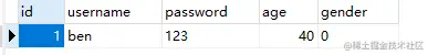values ('ben', '123', 40, '0')
