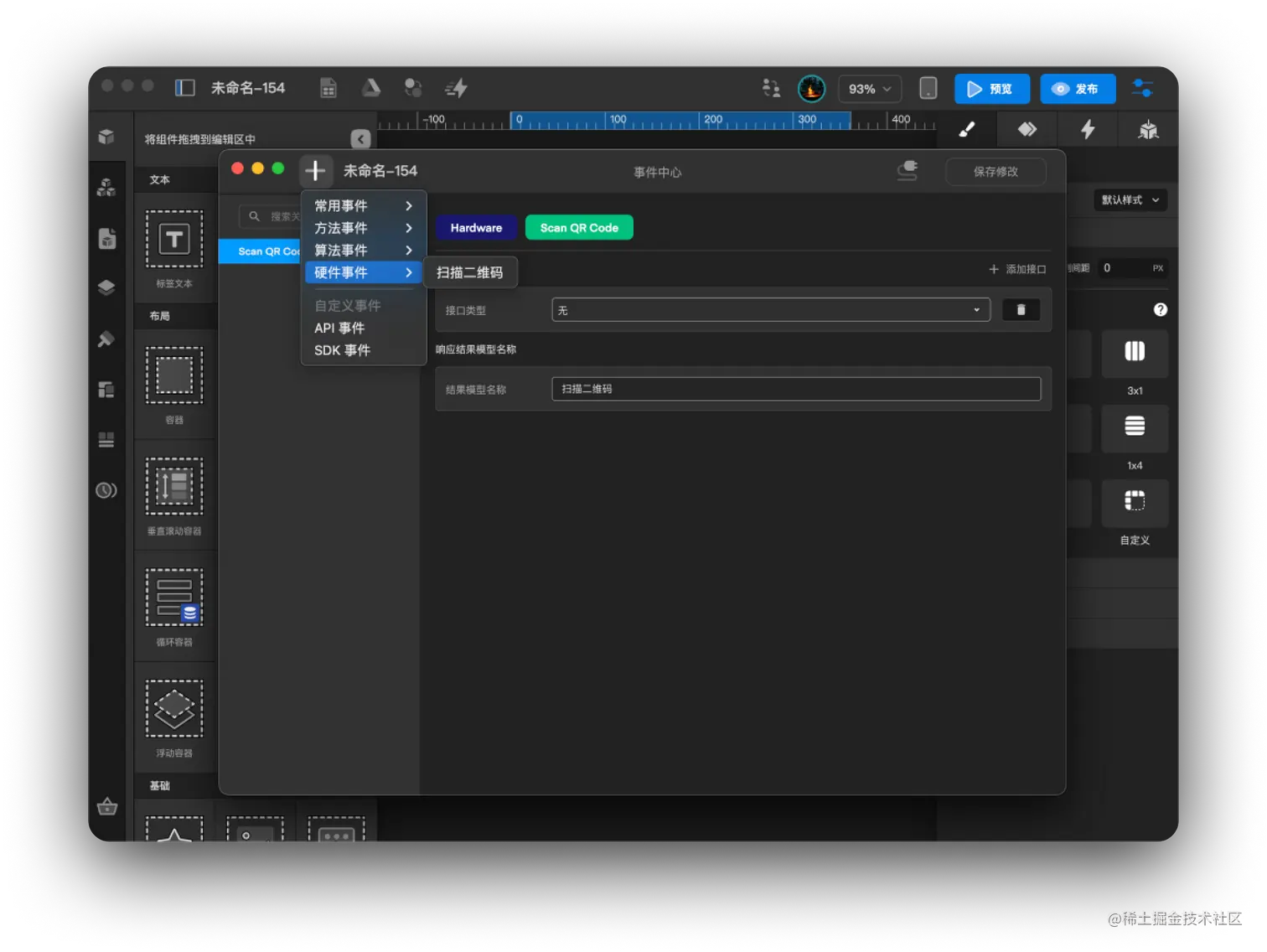 - 二维码扫描功能,事件中心支持配置二维码扫描事件,能够唤起微信扫一扫功能,并传递值到界面。