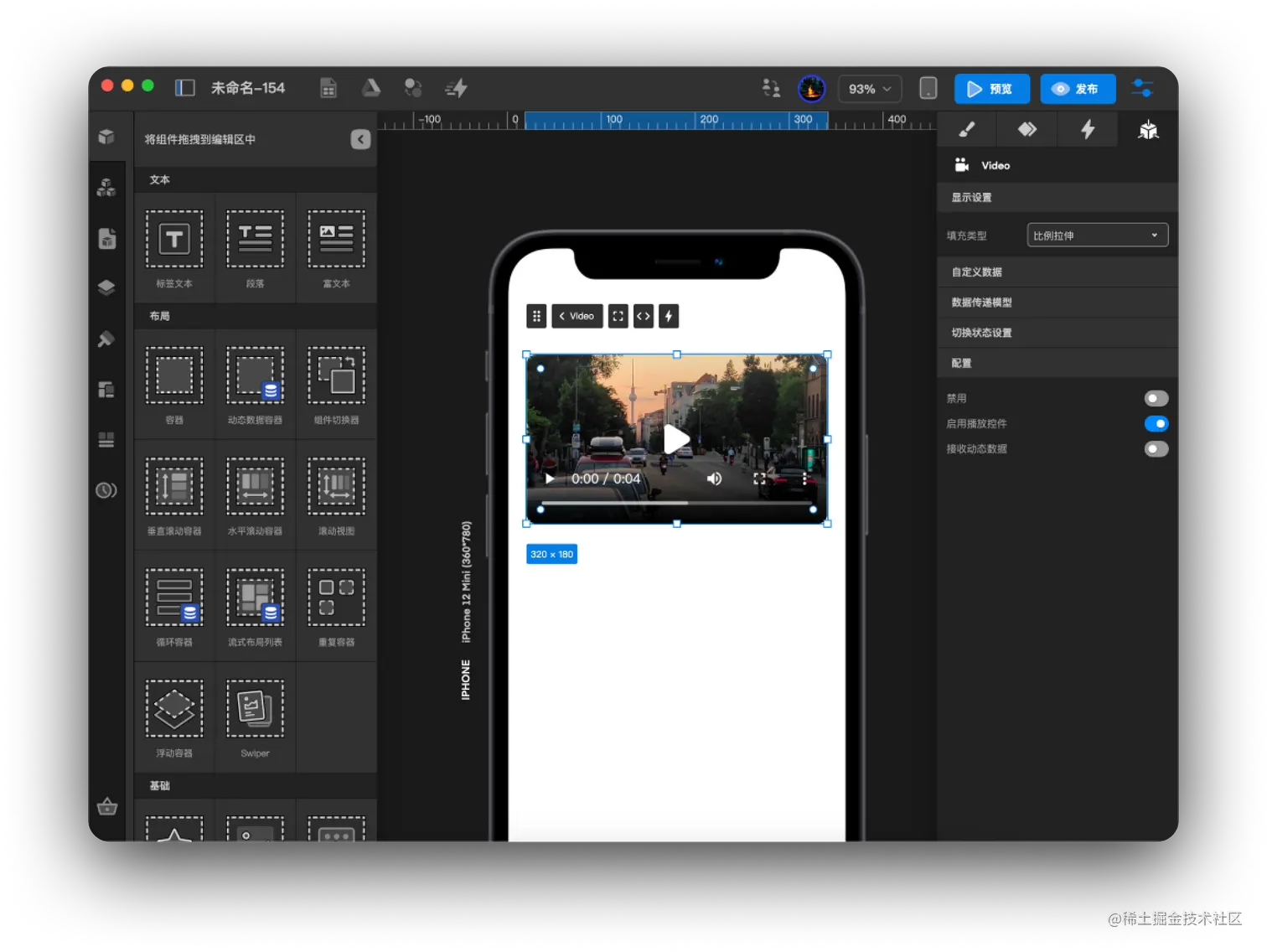 - 播放控件,在视频组件新增了播放控件(播放/暂停按钮、播放进度条)的配置,用户可灵活选择配置该控件。