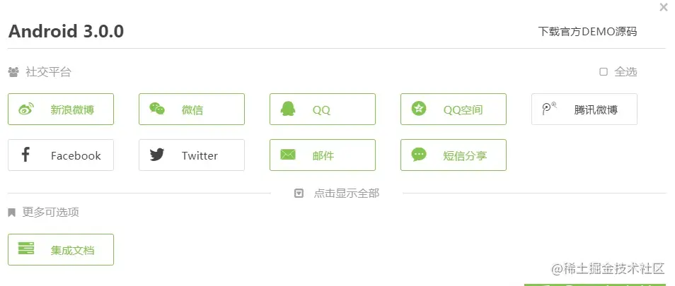 官网下载地址:ShareSDK,下载时选中要分享的平台,如下图所示: