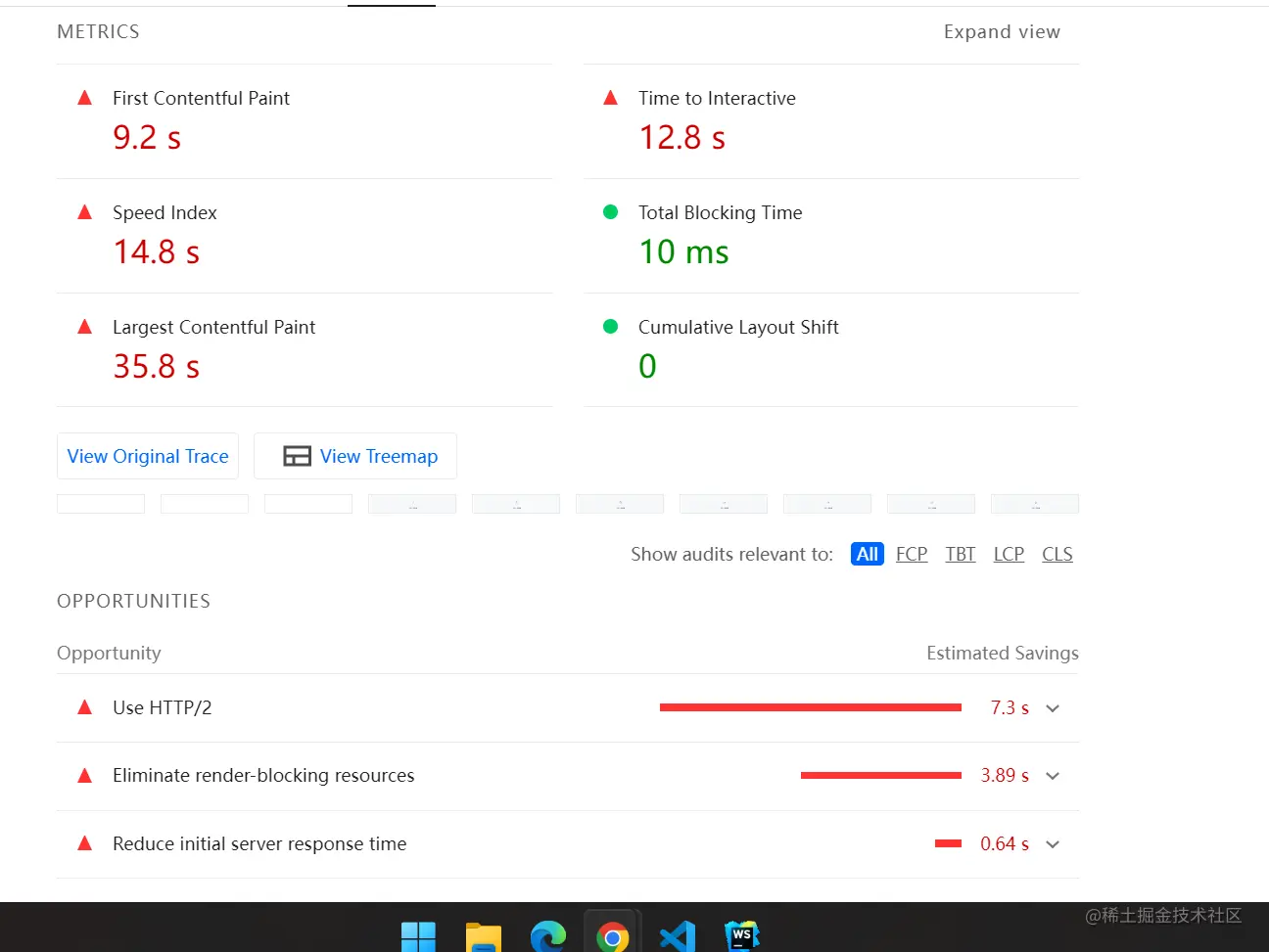 Lighthouse 中FCP 、TBT、 LCP、 CLS等加载耗时