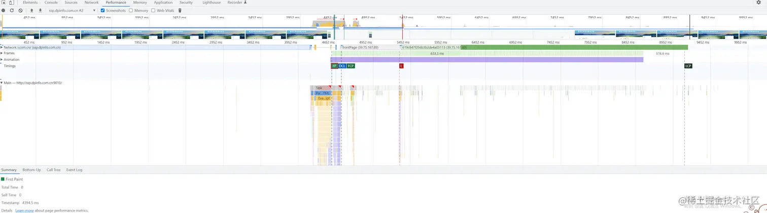 我们通过性能指标采集的数据 可以看到图中performance有三个 FP (首次绘制),DCL(DOM内容加载事件) ,FCP (首次内容绘制),LCP(最大内容绘制),动画加载,子框架加载,网络请求等耗时