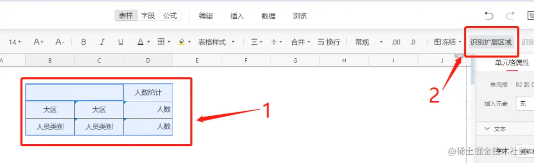 在报表中还存在一个必要操作,就是选中需要扩展的区域设置为识别扩展区域,这样才能使数据实现扩展。