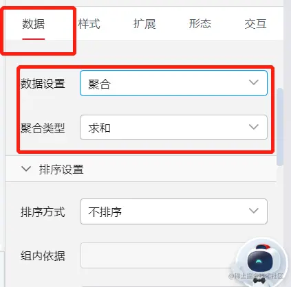 在报表中计算数据,可以通过拖拽字段后,直接选中字段,在右侧的属性栏中,对其数据设置以及聚合类型进行修改。