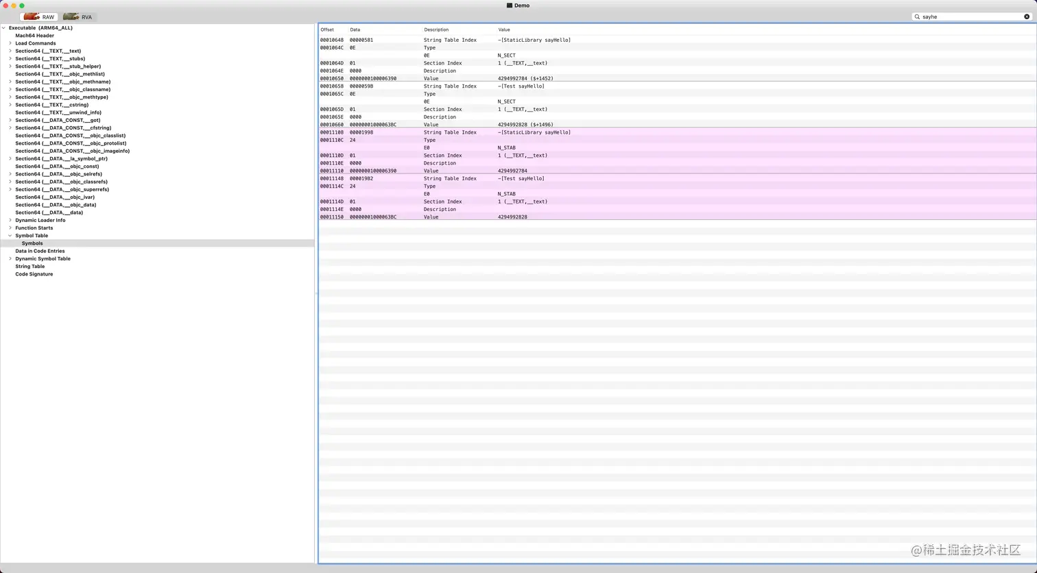 和静态库类似,都是一系列目标文件的集合,区别在于动态库不会在构建阶段直接参与链接,而是在APP 运行时动态链接。其常见的表现形式为 .tbd、.dylib 或者 .framework 后缀的文件,使用 file 命令可以看到其描述如下:Mach-o dynamically linked shared library