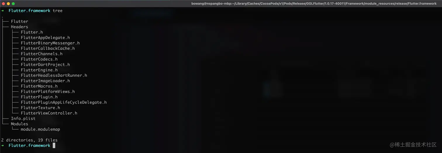 其中,Headers 存放公开的头文件,Info.plist 存放框架的基本信息,比如名字,版本号等,Modules 存放了该 Framework 作为 Clang Module 使用的必要信息,比如这里的 modulemap 文件。