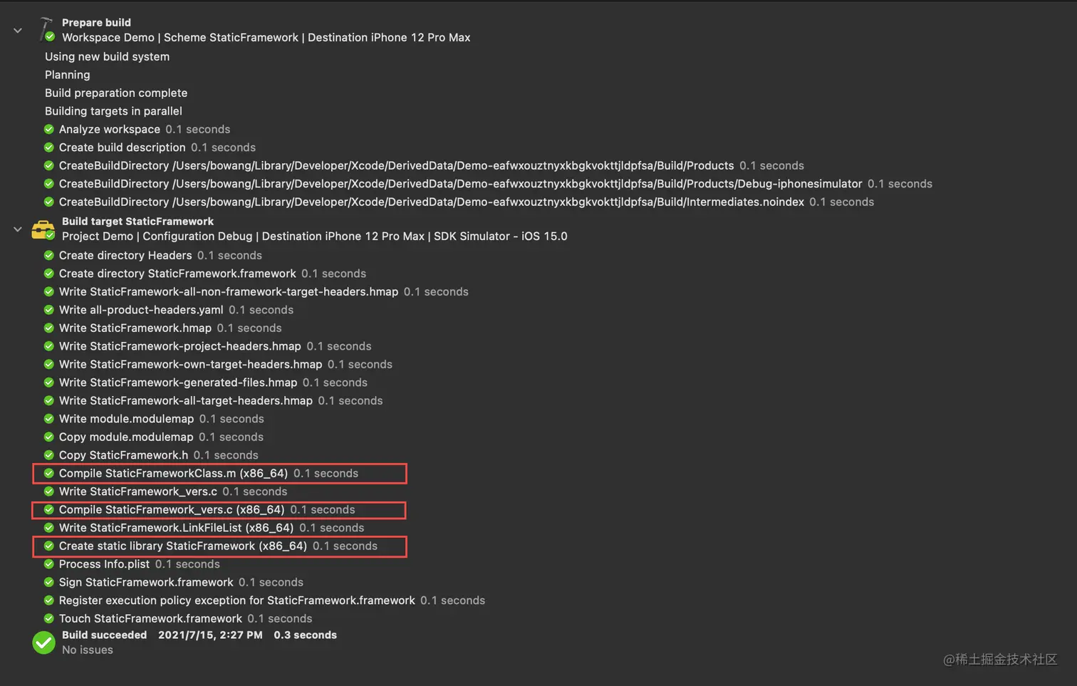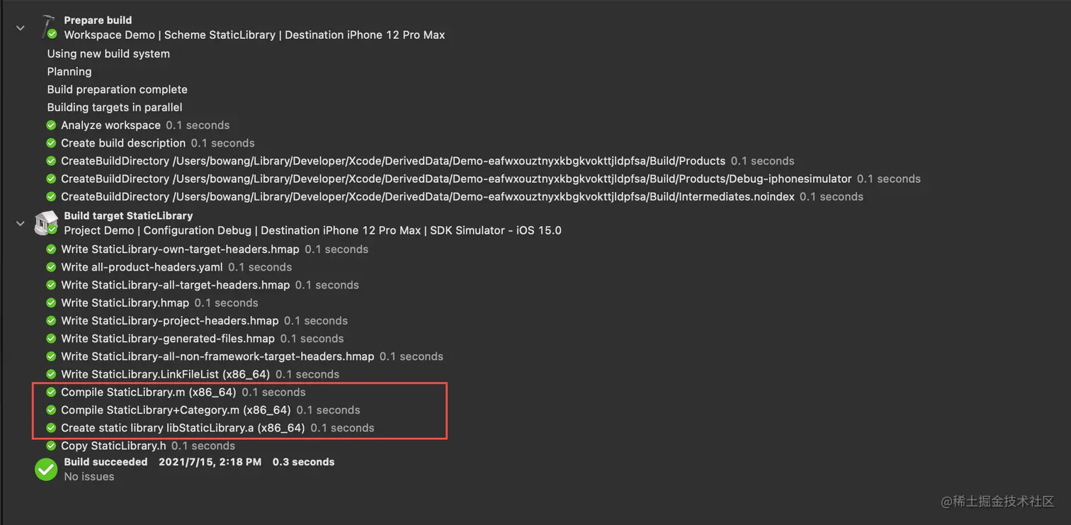 静态链接库只需要经过源文件的编译,生成目标文件后,打包在一起就完成了所有工作。.framework 相较 .a 格式,多了一些 info.plist、modulemap 等处理。
