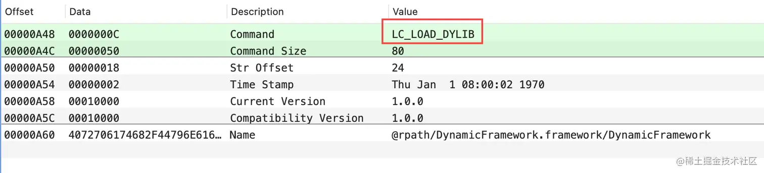 在打包 APP 包时,ld64 参与最终的链接过程,对于上述两种链接参数,会在 Mach-O 文件中呈现以不同的 Command 类型: