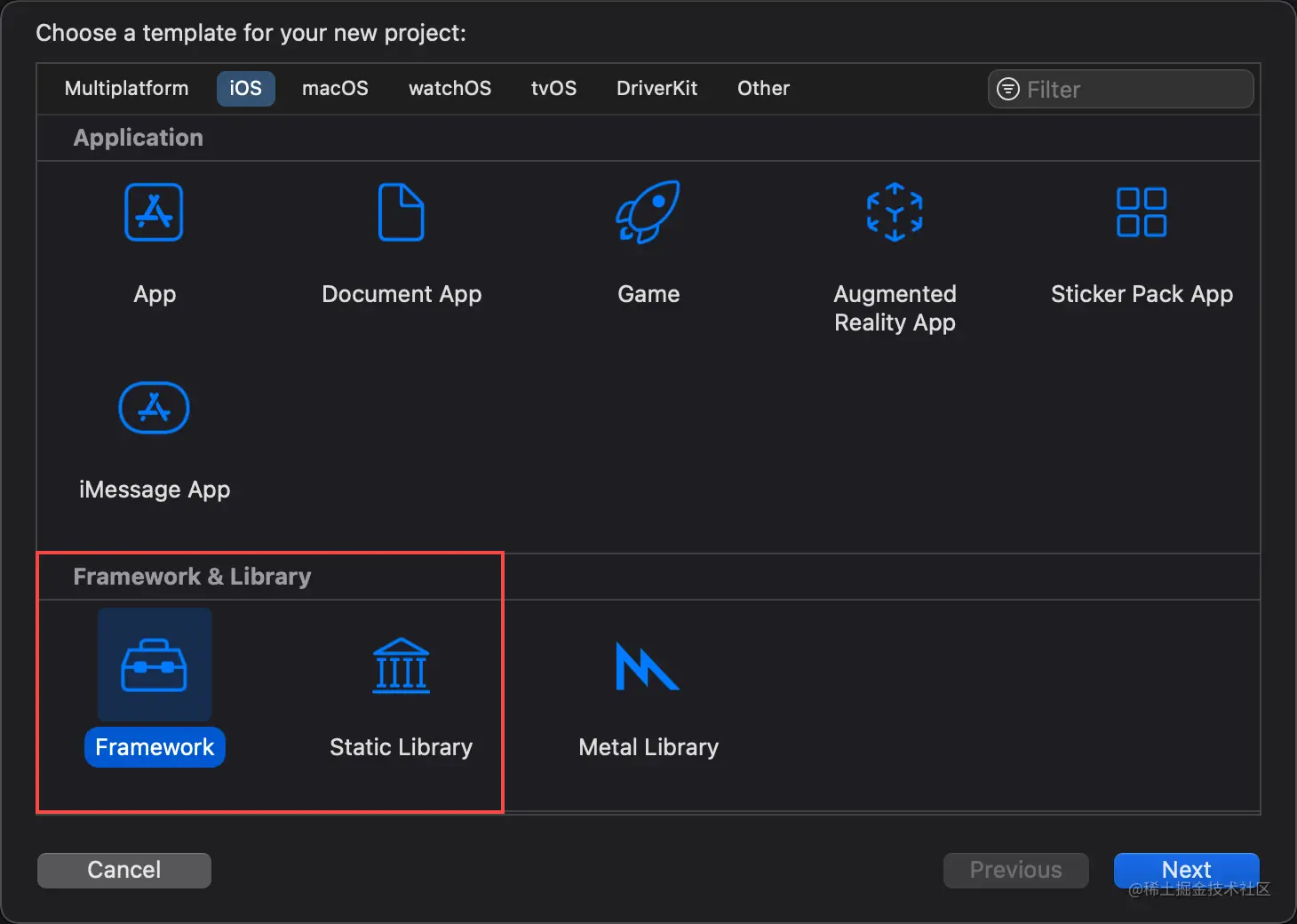 Xcode 在工程模板中提供了两种库模板: