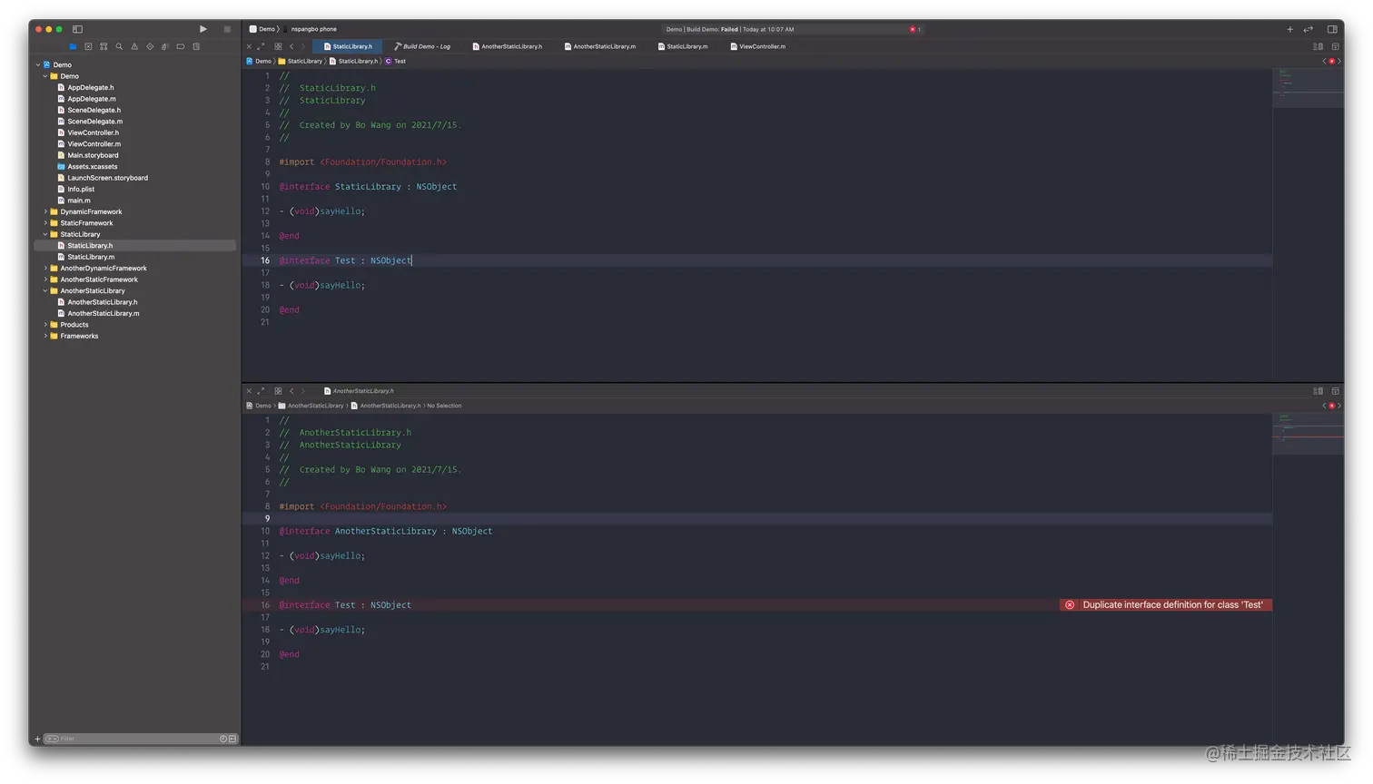 - 两个静态库不能暴露相同符号,否则会在链接的时候报符号重复: