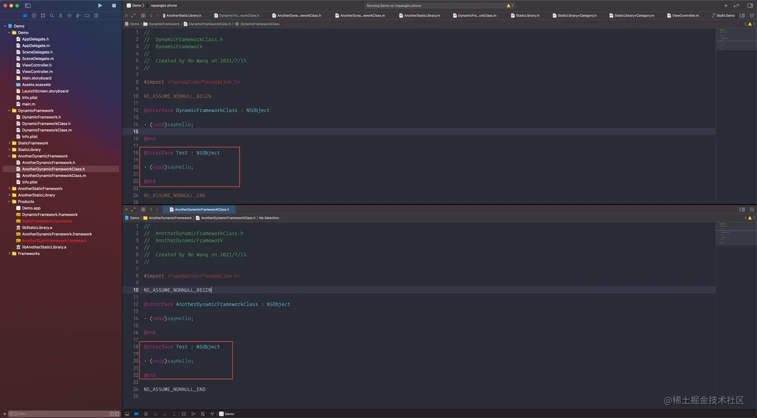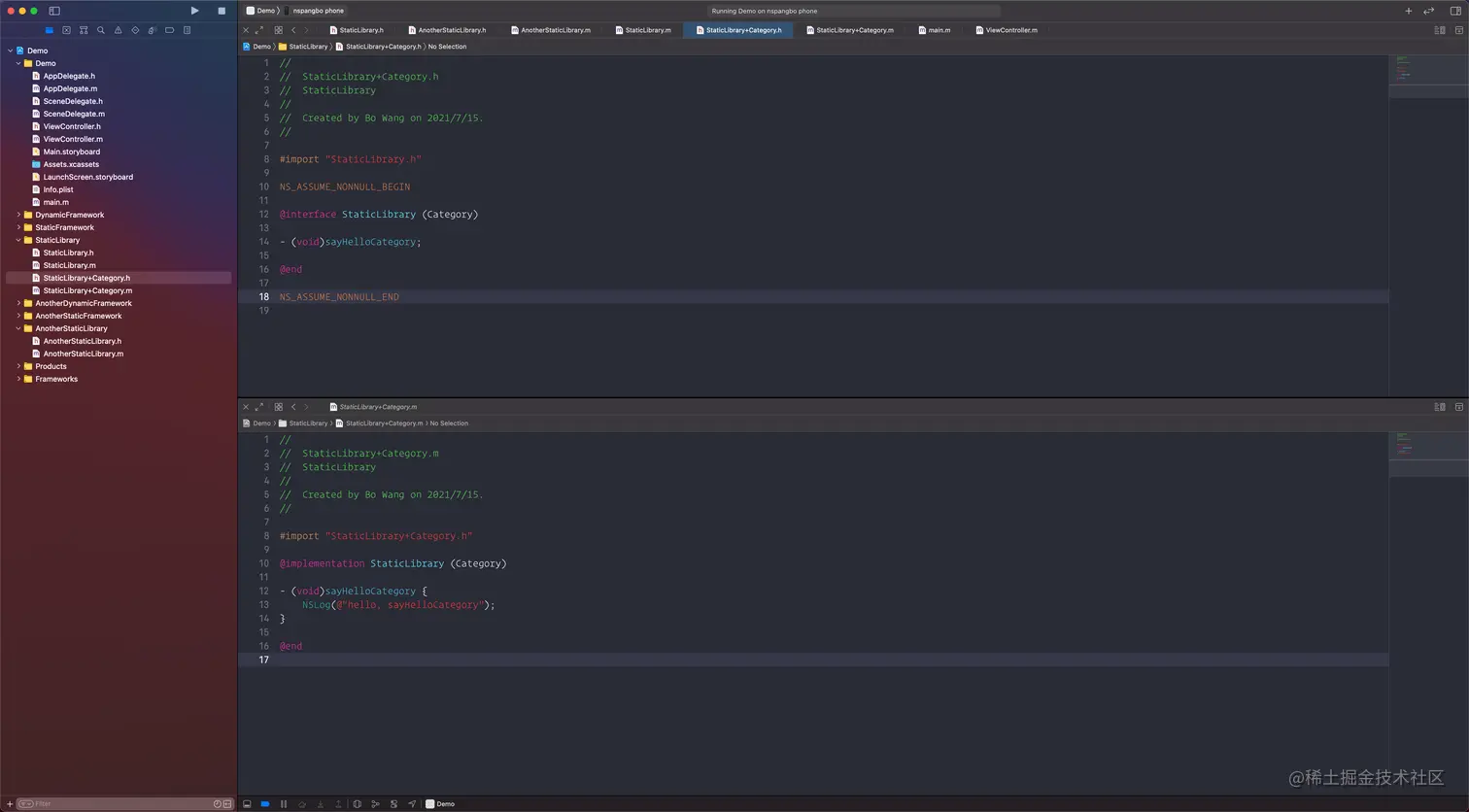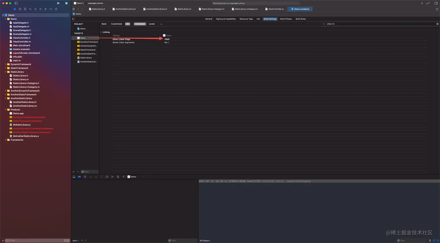 .framework的动态库或者静态库因为不会被链接到其上游依赖方,因此使用上游库的时候,还需要导入这些依赖-ObjC配置能保证静态库的类别也被链接动态库或app工程生成的可执行文件里面: