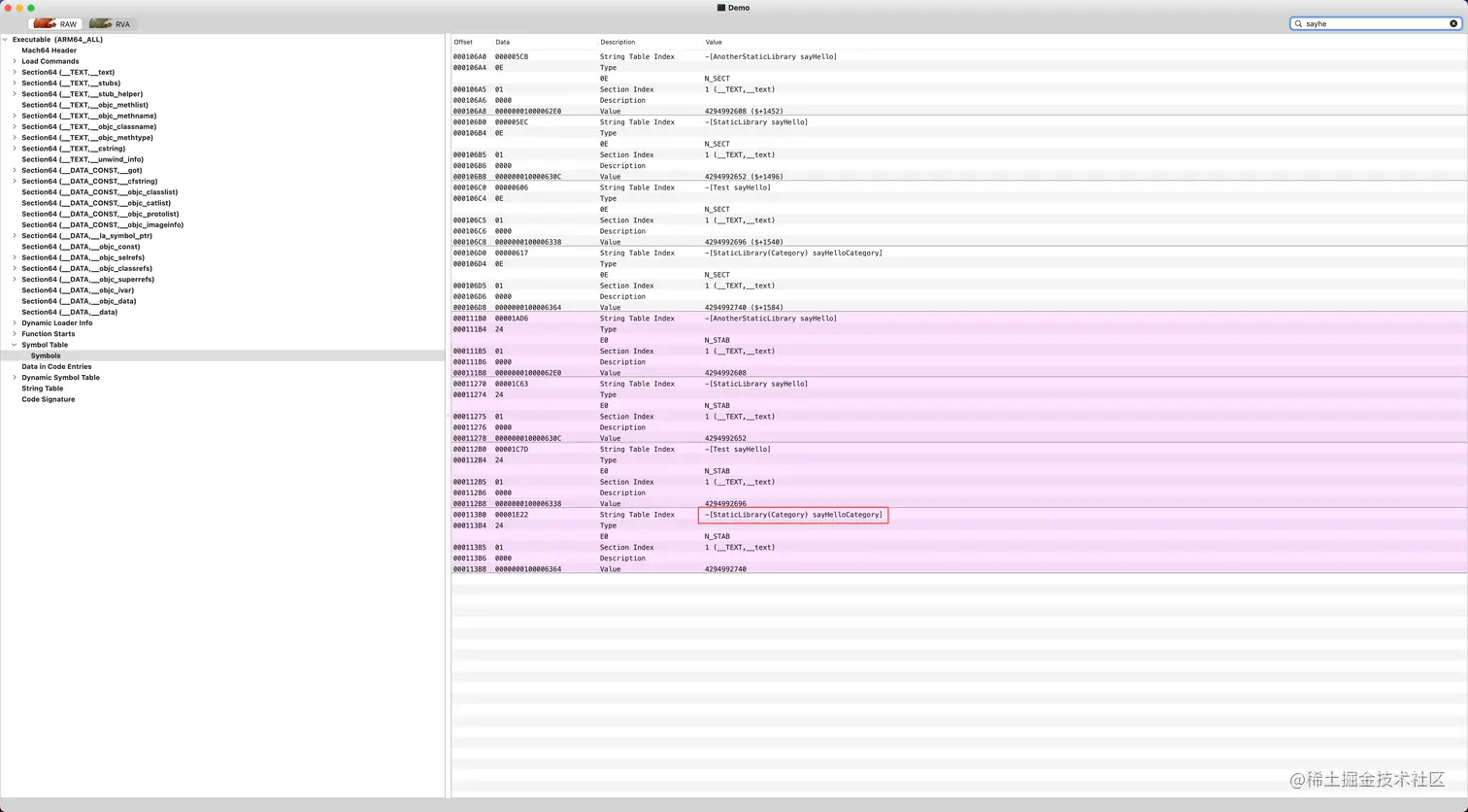 增加 -ObjC 标记后,扩展成功链接到了产物中: