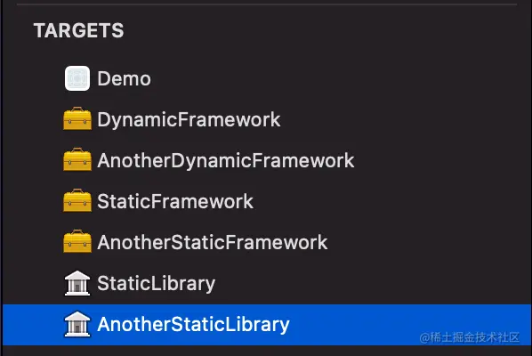 Static Library 用于创建纯代码的静态库,最终产物为 .a 文件。
