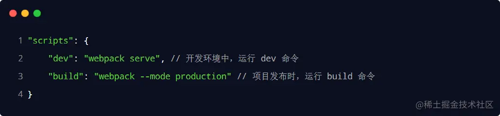 在 package.json 文件的 scripts 节点下,新增 build 命令如下: