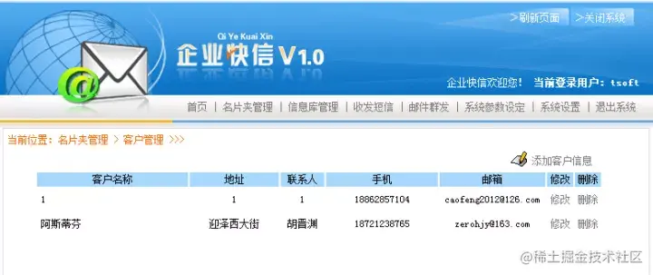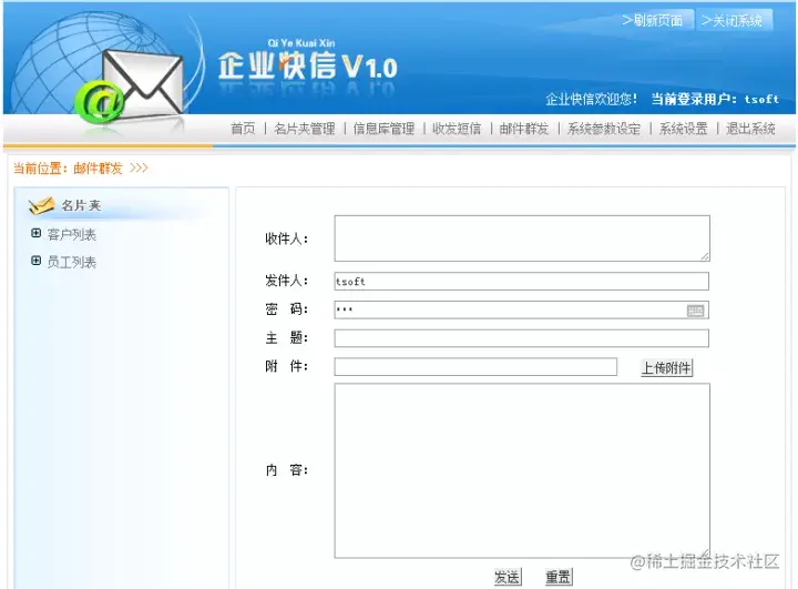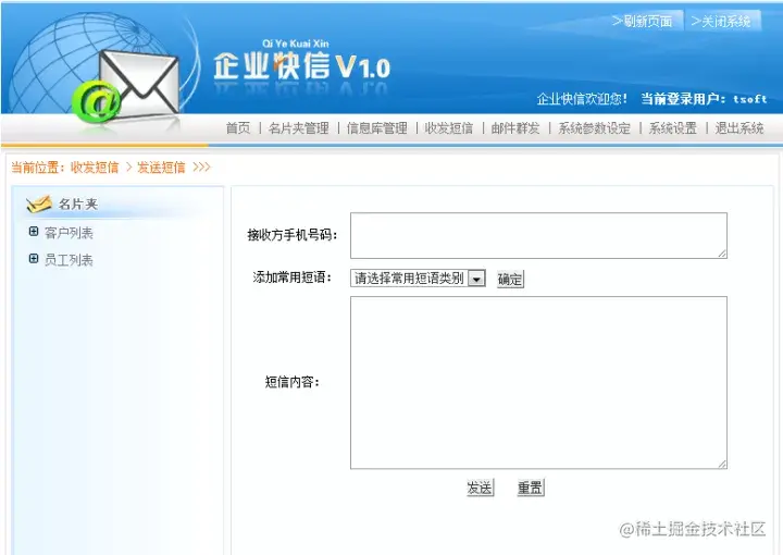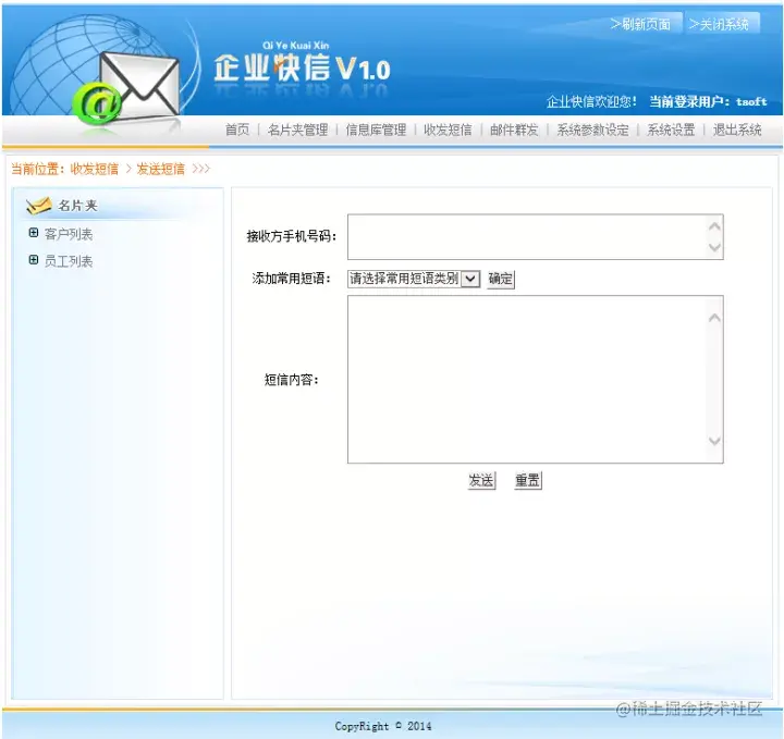本文首先对企业快信的开发进行了较深入的研究,然后对短信发送与邮件发送原理进行了介绍,接下来对系统的概要设计、功能模块、数据库设计,以及名片夹管理功能与邮件发送功能的具体实现作了细致阐述,最后是系统效果的展示。企业快信系统是一个集短信与邮件为一体的移动商务应用系统。是针对企业内部II及外部不同需求和应用方面,而专门定制开发的系统软件。它完全集成了企业的业务推广、客情沟通、内部管理等应用功能。企业快信的作用是帮助企业解决企业内部、企业与外部沟通难、信息不能及时传播等问题。为此,系统提供邮件群发、短信群发、人员档案、信息的管理等功能。系统是短信猫与邮件在企业商务应用中的典型实例,因此必然受到众多企业的青睐,成为企业通信的最佳选择。