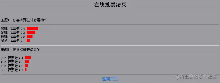 - 在首页中点击“在线投票“链接后,可以查看在线投票的结果。