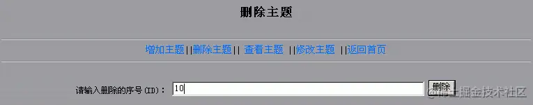 - 在投票设计中点击“删除主题“链接后,即可打开删除主题页面。如果你要删除某个主题以及其选项,只需在文本框中输入其ID号即可。(如果你不知道待删除主题的ID号你可以首先点击”查看主题“查看其ID号。