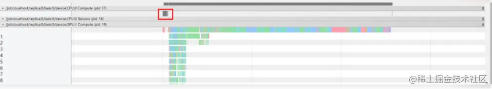 Device Placement Optimization 性能优化明显,CPU 算子(主要是 Embedding Layer)的计算集中在 timeline 的最开端,之后 GPU 主要负责网络层的计算。相较于 CPU 推理,Device Placement Optimization P99 降低 35%。