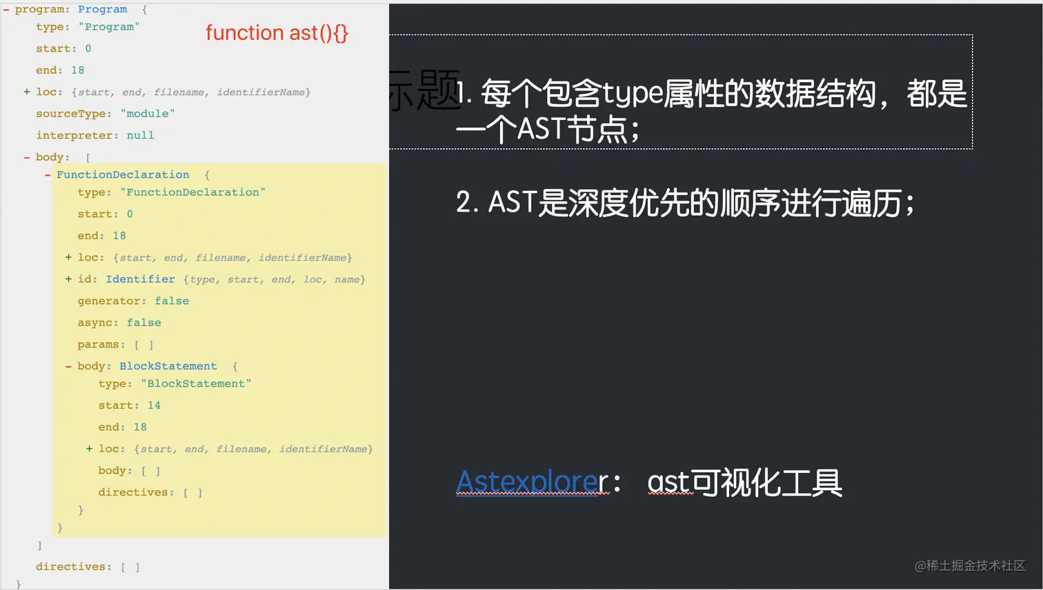 以下是普通函数function ast(){},转换为ast后的格式: