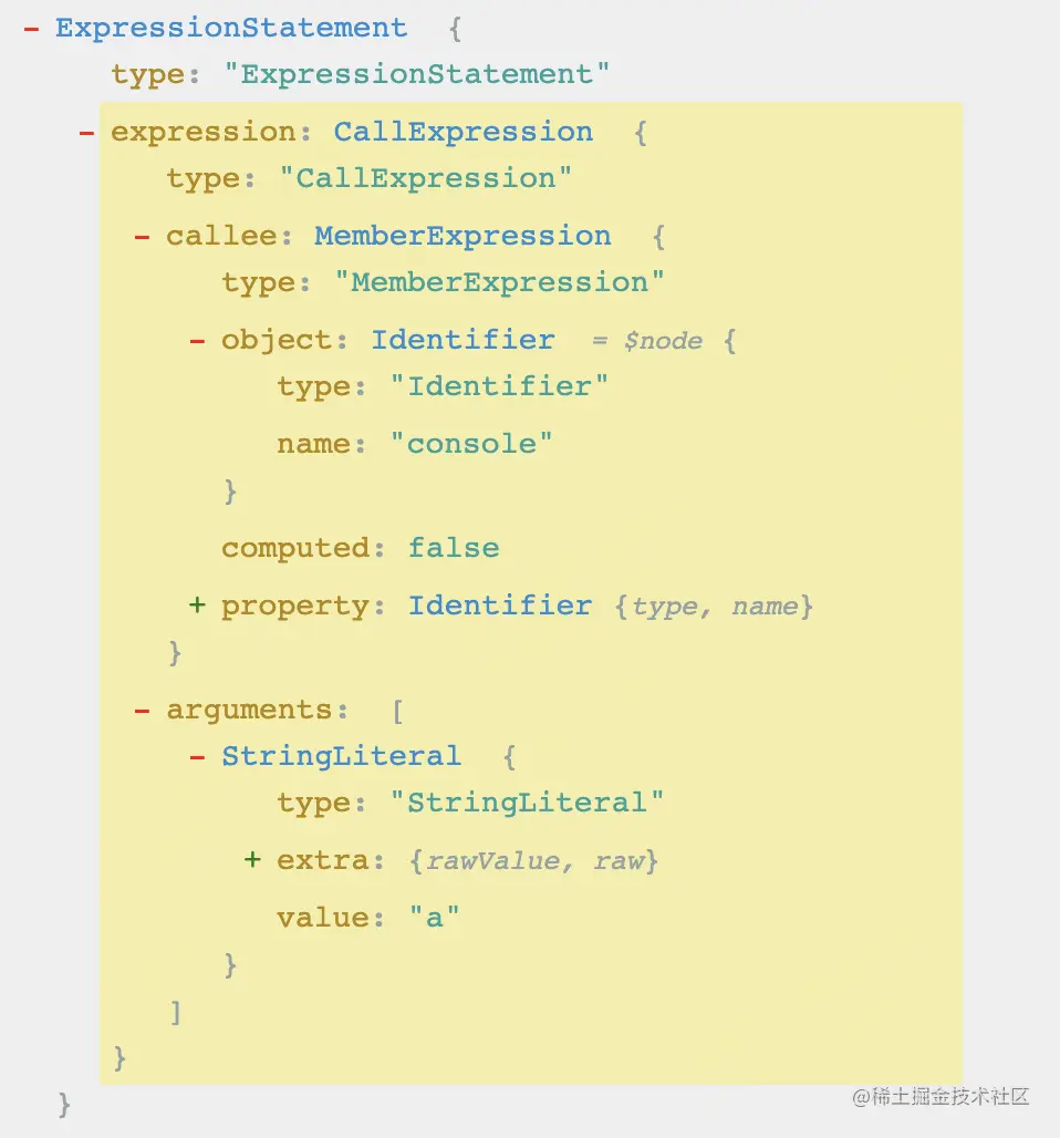 先看下 console.log('a') 的AST长什么样子?