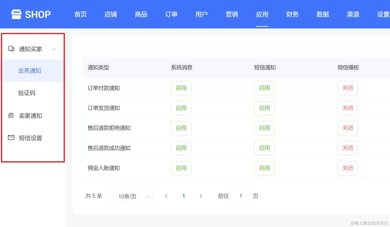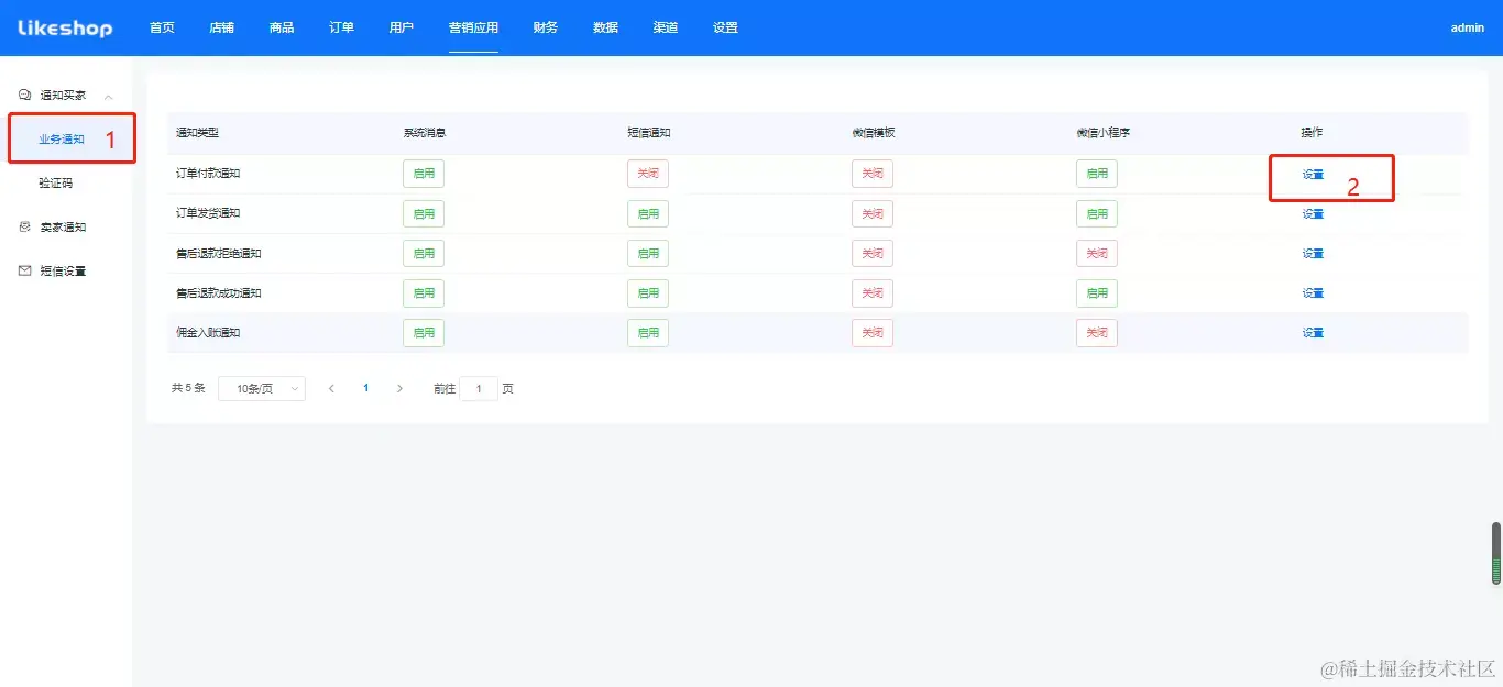 消息通知—通知买家:配置在各个场景下的通知发送方式和内容模板,如下图所示: