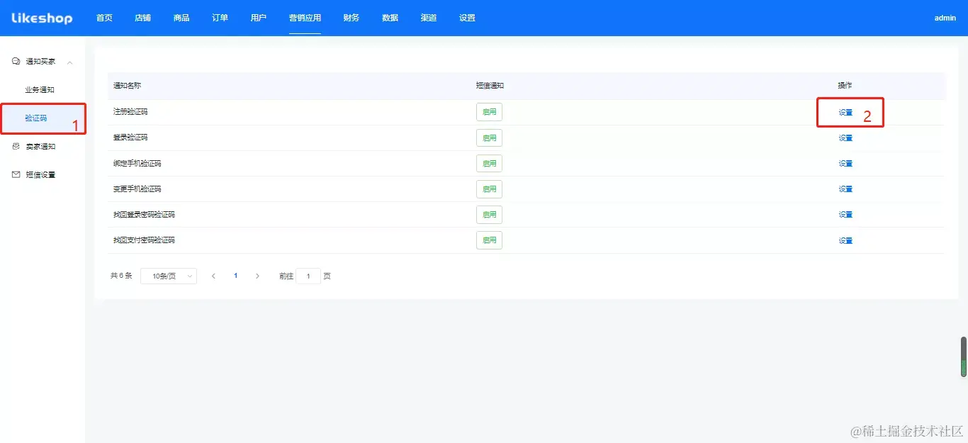 消息通知—短信设置:支持腾讯云、阿里云短信配置,如下图所示: