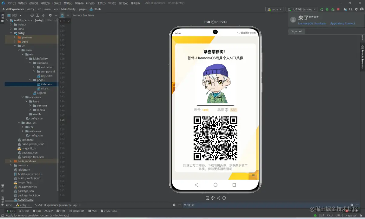 【 玩转 A rk UI 开发 , 3 00余人 获得专属 HarmonyOS 数字藏品头像 】