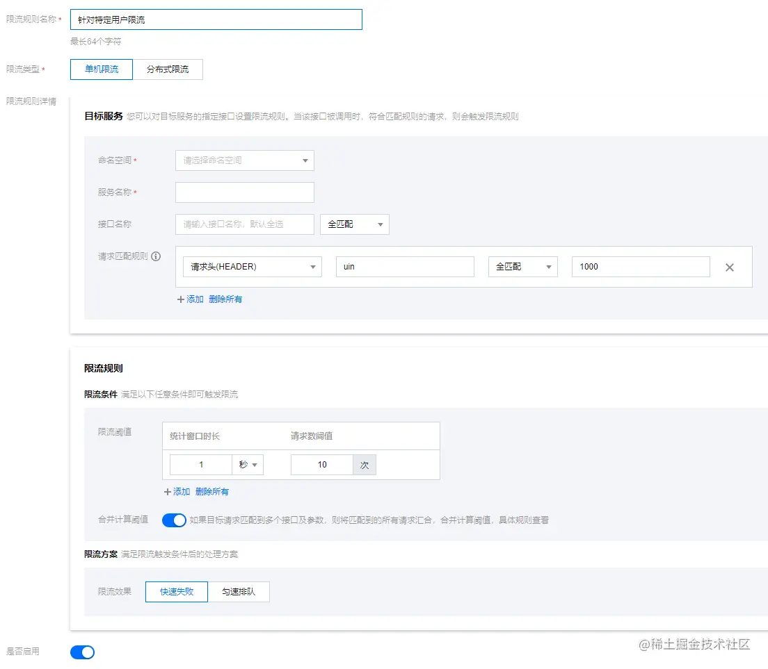 访问限流:从交互和限流精细化层面进行优化,支持针对请求参数、接口、主调服务的维度进行精细化限流,也同时支持网关层限流和微服务限流。