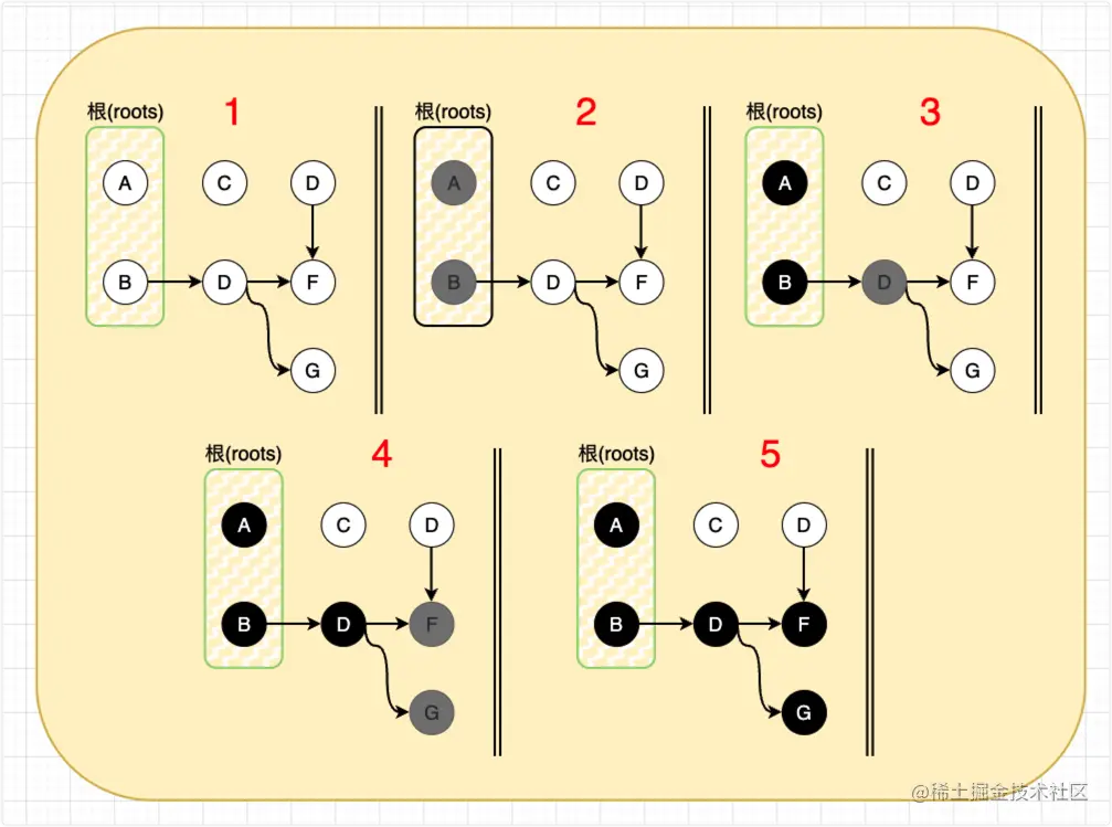 为了解决这个问题,V8 团队采用了一种特殊方式: 三色标记法