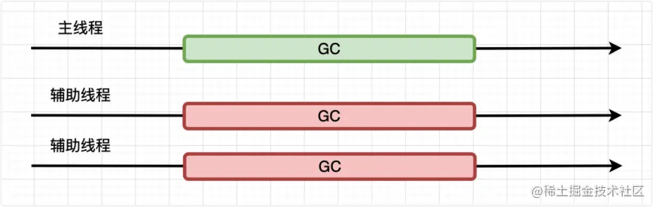 所谓并行,也就是同时的意思,它指的是垃圾回收器在主线程上执行的过程中,开启多个辅助线程,同时执行同样的回收工作。