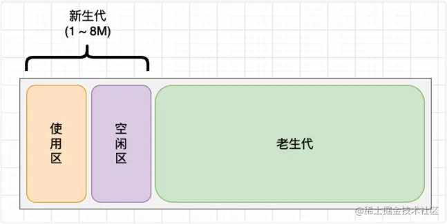 新生代的对象为存活时间较短的对象,简单来说就是新产生的对象,通常只支持1~8M的容量,而老生代的对象为存活时间较长或常驻内存的对象,简单来说就是经历过新生代垃圾回收后还存活下来的对象,容量通常比较大