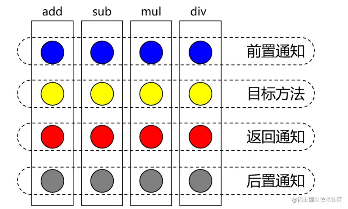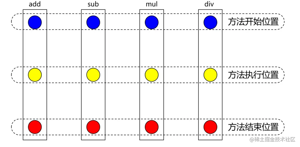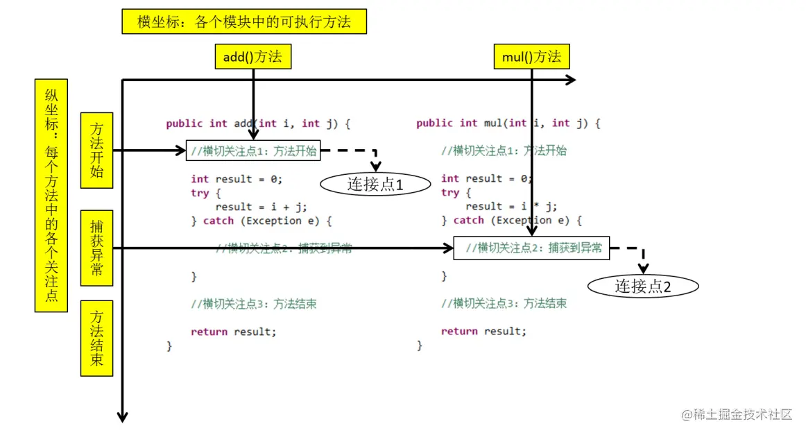 把方法排成一排,每一个横切位置看成x轴方向,把方法从上到下执行的顺序看成y轴,x轴和y轴的交叉点就是连接点