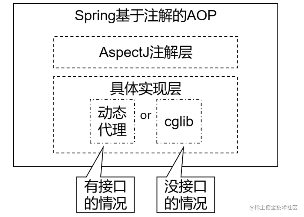 - AspectJ:本质上是静态代理,将代理逻辑 “ 织入 ” 被代理的目标类编译得到的字节码文件,所以最终效果是动态的。weaver就是织入器。Spring只是借用了AspectJ中的注解。