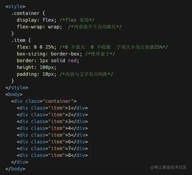 6、flex 实现 8 个元素分两行排列 每行 4 个平均分布-自适应