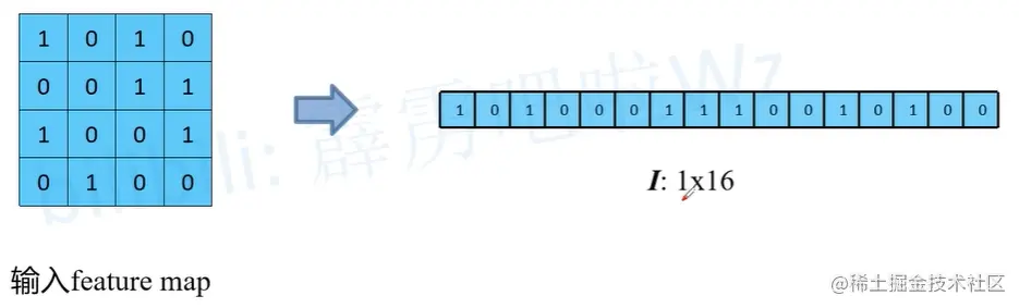 两个矩阵相乘就得到了输出特征图的展开形式。
