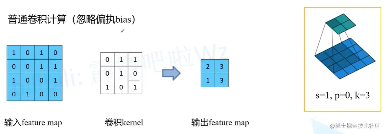 首先构建出与输入特征图相同大小的0矩阵,然后填充卷积核参数,然后与输入特征图相应位置相乘相加就是卷积输出