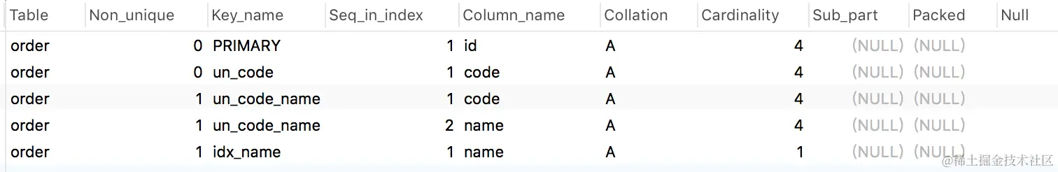 show index from `order`;