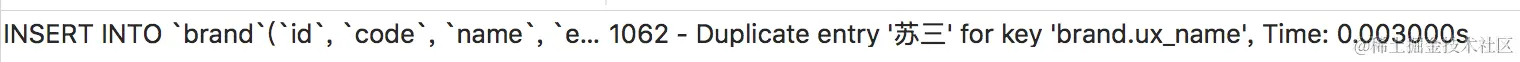 肯定不行,因为brand表的name字段创建了唯一索引,同时该表中已经有一条name等于苏三的数据了。