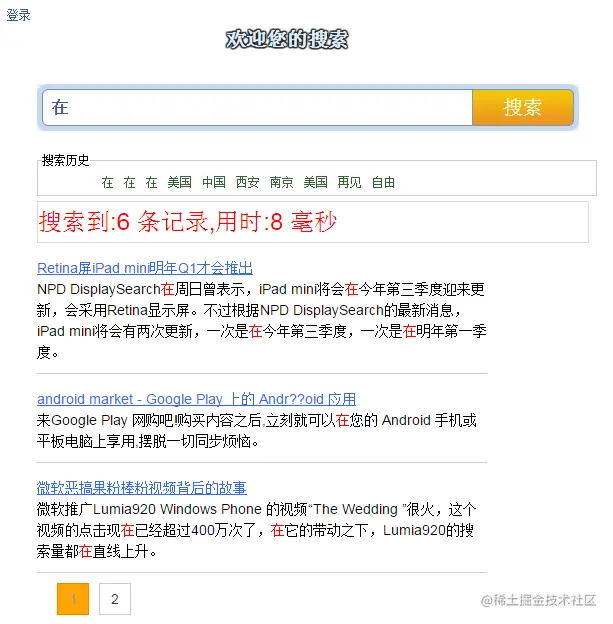 可见搜索结果是正确的,并且关键字都已高亮度显示。