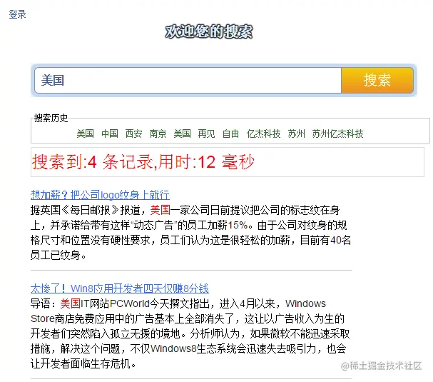到此搜索引擎的基本功能都已基本完成,但是还有待改进或加强的地方,例如如果把分词做到最优最人性化,怎样分才是最合理,都需要进一步研究。