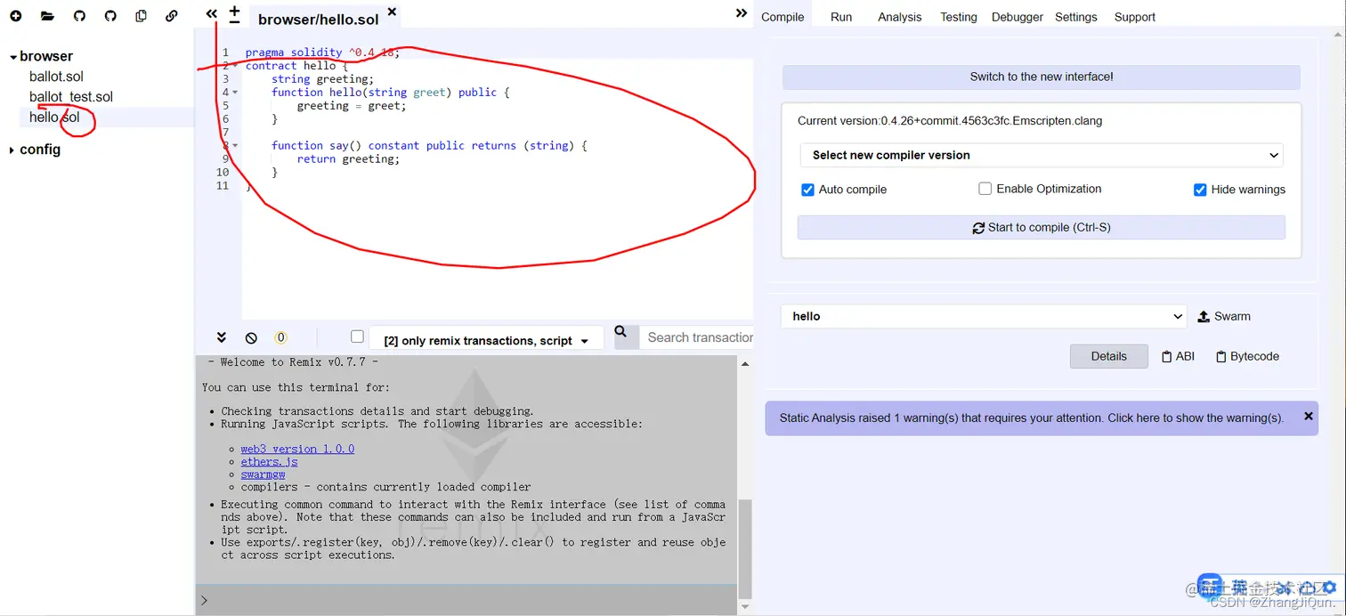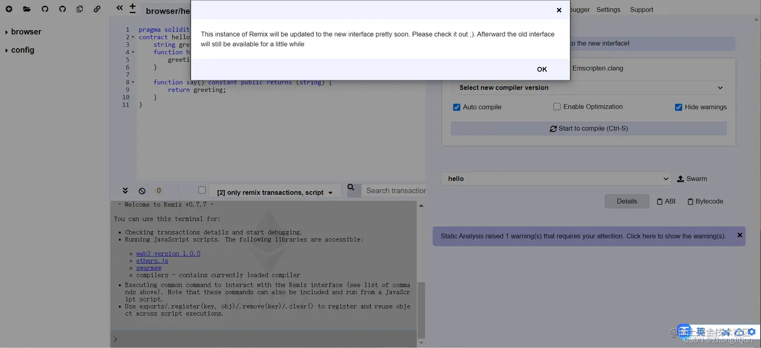 以太坊官方推荐的智能合约开发IDE,适合新手,可以在浏览器中快速部署测试智能合约