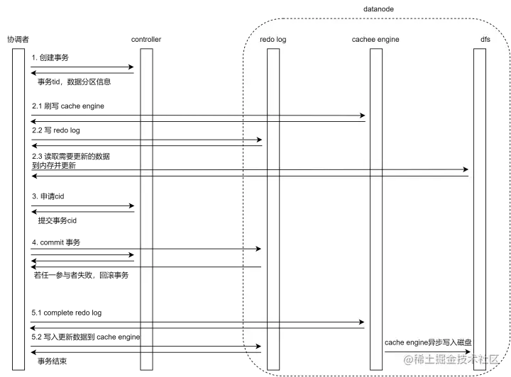分布式表数据更新过程是一个事务,采用两阶段提交协议和 MVCC 机制,OLAP 引擎数据更新的具体流程如下: