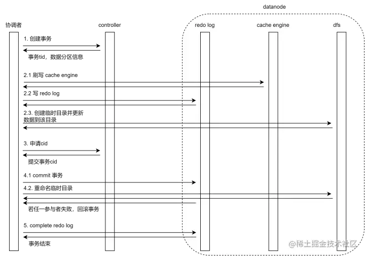 - 在数据节点上创建事务和对应临时目录,并更新数据到该目录下。
