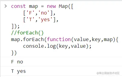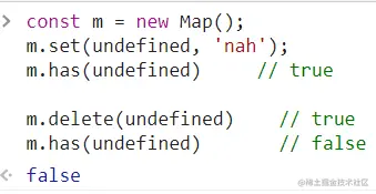 has():返回一个布尔值,表示某个值是否在当前Map对象之中