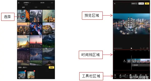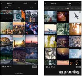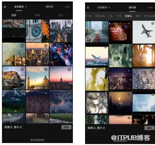 进入“素材选择”界面,从中选择相应的图片或者视频素材。
